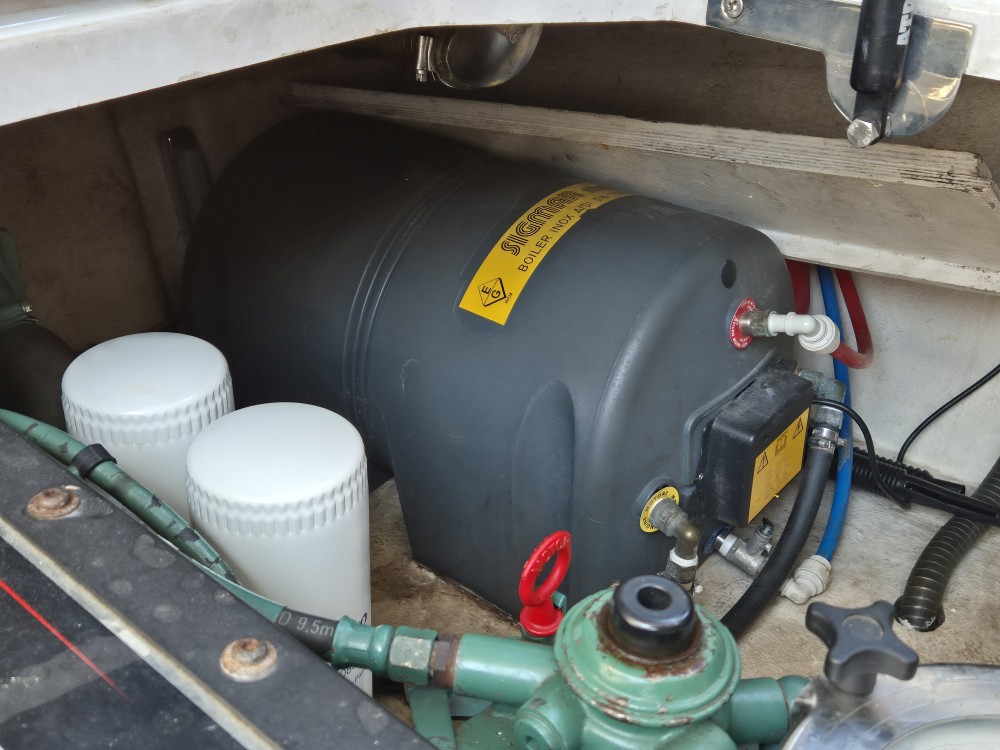 Wyposażenie kuchenne: płyta grzewcza Wallas (diesel, bez otwartego ognia), zlew, lodówka, barek, zastawa La Mania, garnki, kubki, sztućce, grill przenośny w bezpiecznej obudowie
