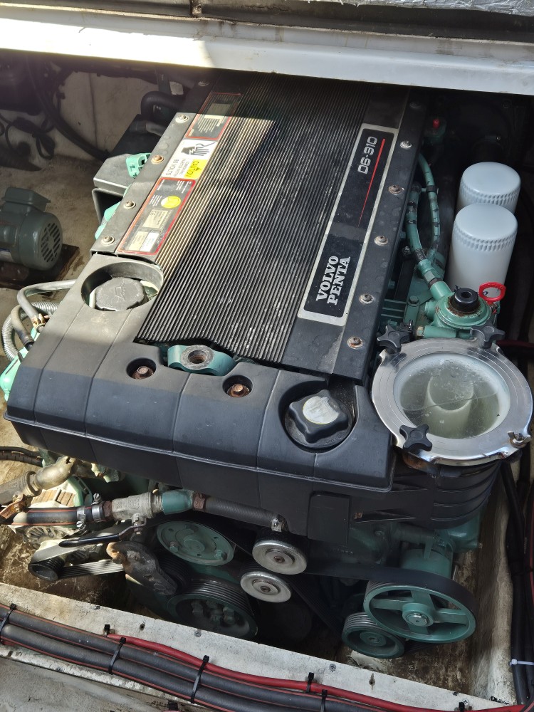 Historia serwisowa: 2025 – wymiana sprzęgła i przegubu kardana, nowe akumulatory; silnik serwisowany corocznie w autoryzowanym serwisie Volvo Penta