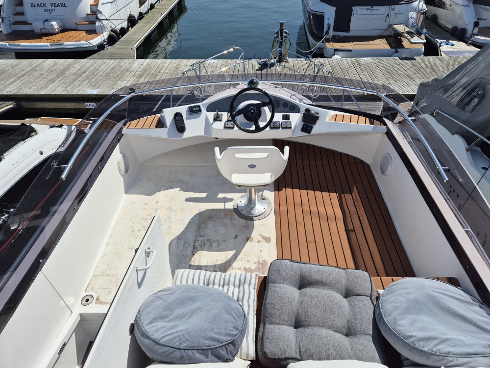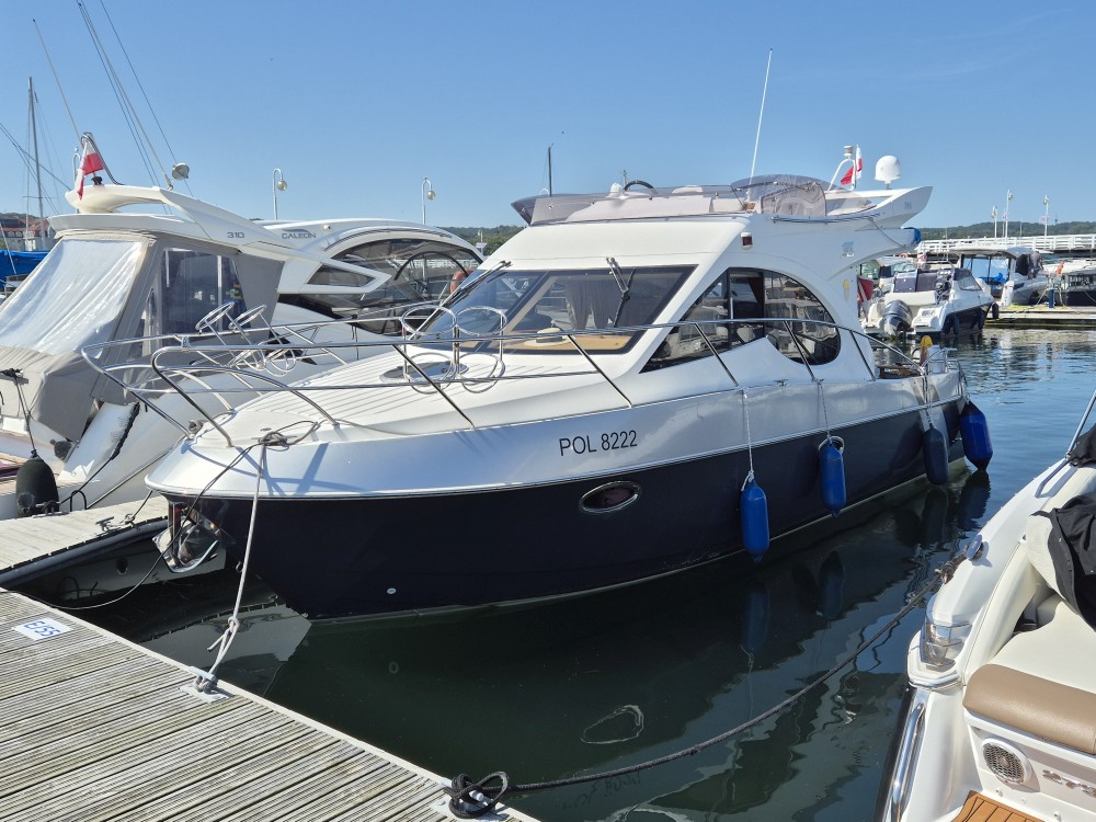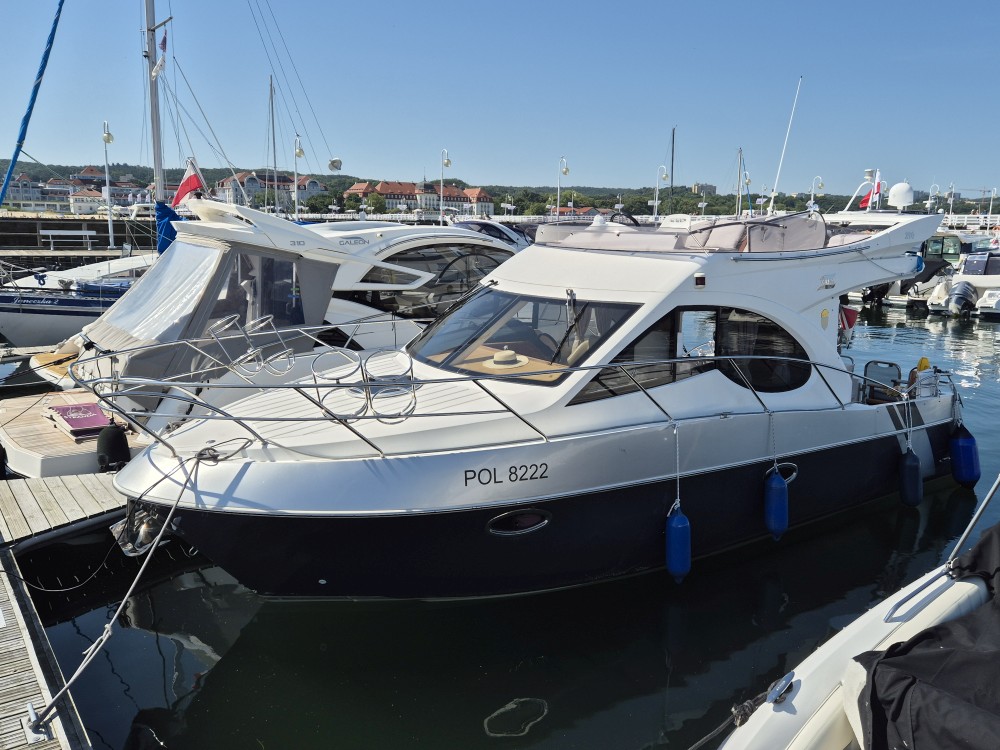 Jacht motorowy Galeon 290 Fly z 2007 roku, kategoria projektowa B (pełnomorska). Długość 8,77 m, szerokość 2,95 m. Silnik Volvo Penta D6-310 (228 kW), klimatyzacja, Webasto, ster strumieniowy, pełne wyposażenie nautyczne i kuchenne. Doskonały do żeglugi morskiej i rekreacji.