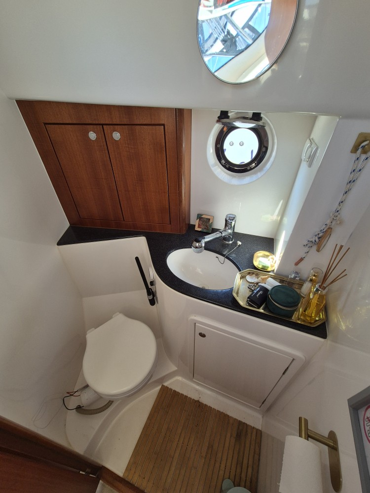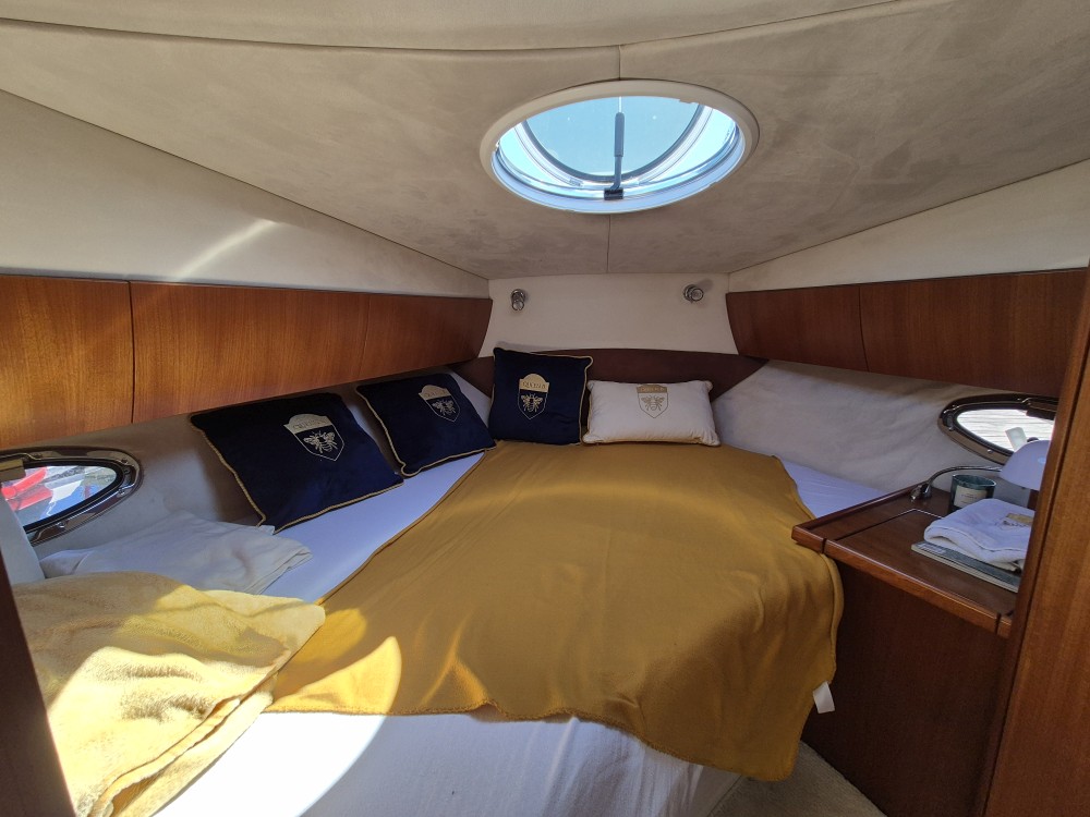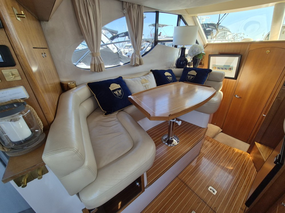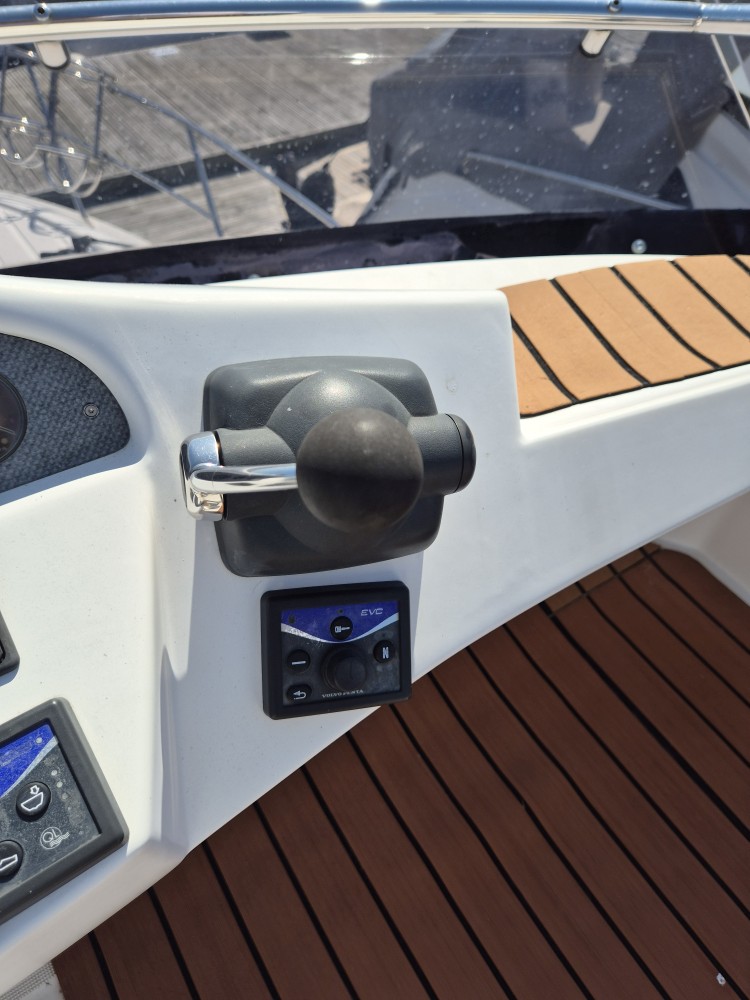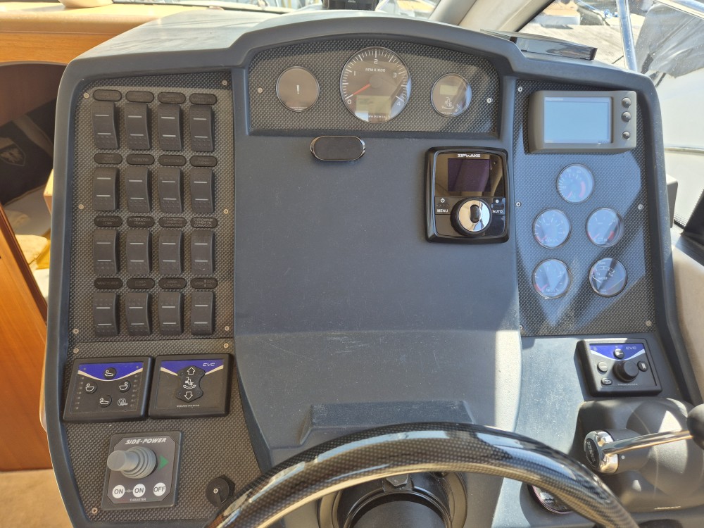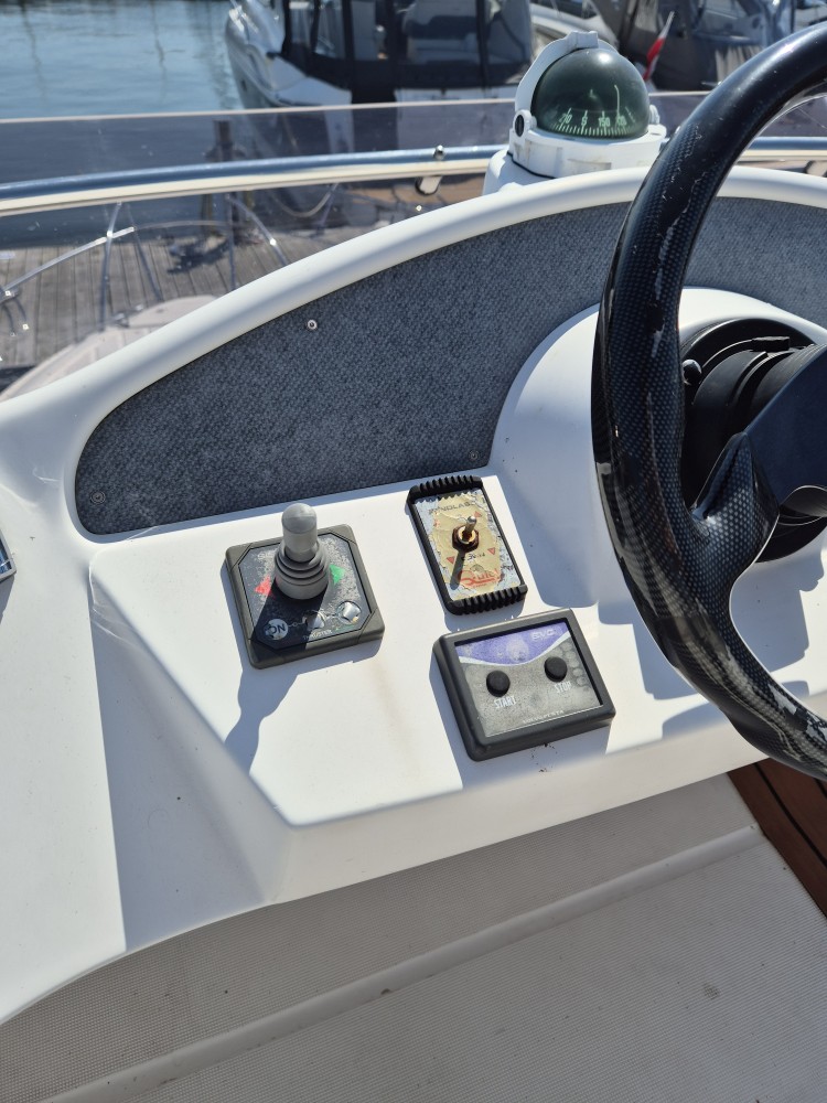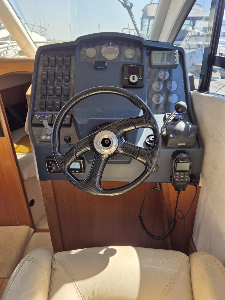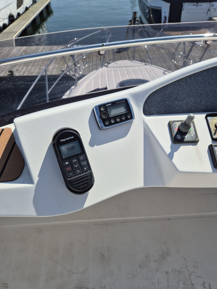 Wyposażenie nawigacyjne: echosonda Raymarine ST40, radio VHF Raymarine RAY90 z anteną GPS, słuchawki w kabinie i na flybridge, kompas, barometr