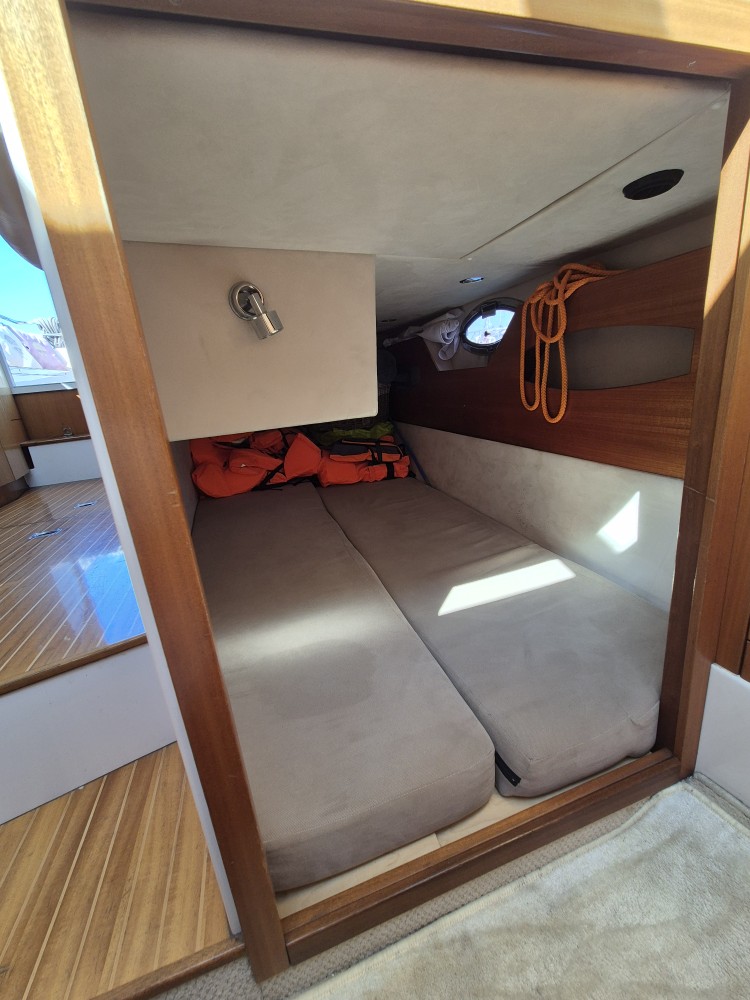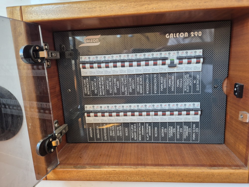 Dodatkowe wyposażenie: nowe akumulatory (2025) z monitoringiem Cerbo GX, system gaśniczy FM-200, gaśnica ABC, kamizelki ratunkowe, koło pneumatyczne, tratwa Hero HC, trymery automatyczne ZiP Wake Series S, kotwica, winda kotwiczna, pompa zęzowa