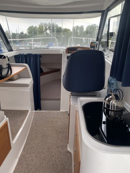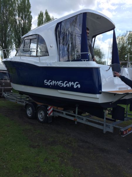 Janmor 700 z 2018 roku na sprzedaż w Szczecinie. Silnik Yanmar 90 mtg, hardtop, bimini, kabrio, instalacja solarna 2 kW, ogrzewanie Volcano, ster dziobowy. Jeden właściciel.