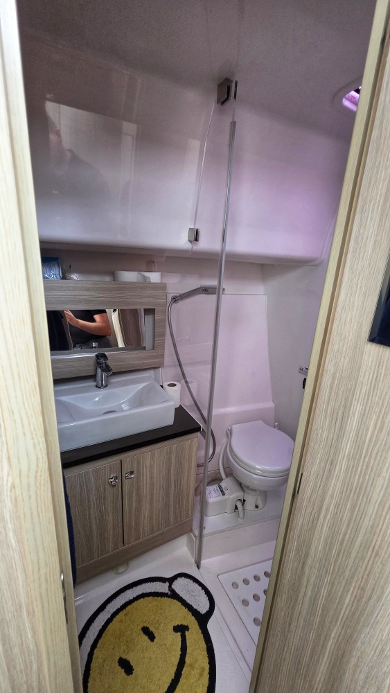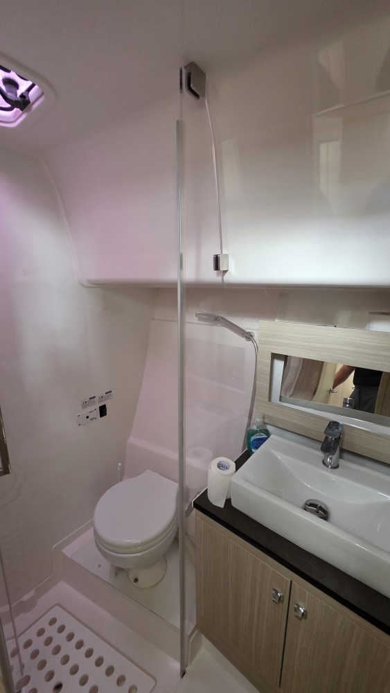 Wyposażenie dodatkowe: pompa do mycia pokładu Karcher (woda zaburtowa), pilot bezprzewodowy do windy kotwicznej z licznikiem łańcucha, agregat prądotwórczy Honda 22i, echosonda, kotwice (rufa i dziób)