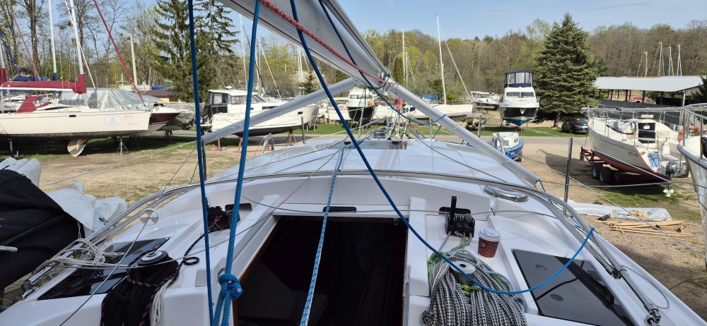 Dobry stan, bogate wyposażenie: ogrzewanie, log + autopilot, ploter z echem, VHF, żagle ~45 m²