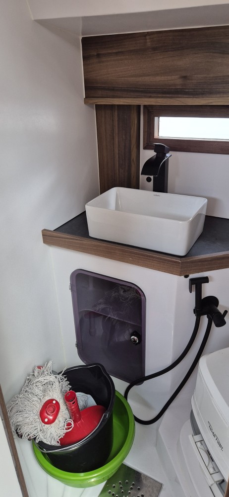Liczba pryszniców: prysznic wewnętrzny w toalecie oraz prysznic rufowy