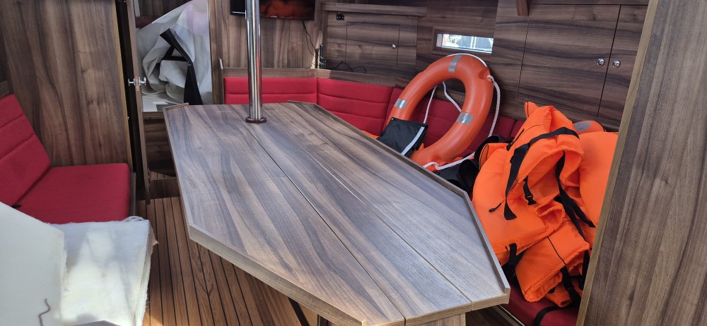 Phobos 34 z 2021 roku w konfiguracji trzykabinowej. Jednostka napędzana ekonomicznym silnikiem diesla Craftsman 16 KM, wyposażona m.in. w ogrzewanie, log i autopilota, ploter z echosondą, VHF, lodówkę, kuchenkę gazową, bimini i szprycbudę. Pokład i kokpit przygotowane do rejsów rodzinnych i turystycznych.
