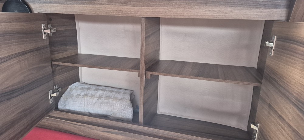 Wyposażenie kambuzowe: lodówka, kuchenka gazowa, garnki, sztućce, radio, telewizor